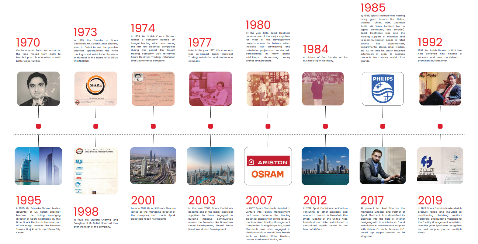 Founded in 1977 by Mr. Satish Kumar Sharma, Spark Electrical Equipment has been one of the pioneers in providing electrical supplies to the growing construction, MEP, and replacement industries. During its early years, the company was also a key supplier to major contracting, electromechanical and supermarket chains, providing electrical and telecommunication accessories for their displays and operationsFounded in 1977 by Mr. Satish Kumar Sharma, Spark Electrical Equipment has been one of the pioneers in providing electrical supplies to the growing construction, MEP, and replacement industries. During its early years, the company was also a key supplier to major contracting, electromechanical and supermarket chains, providing electrical and telecommunication accessories for their displays and operations