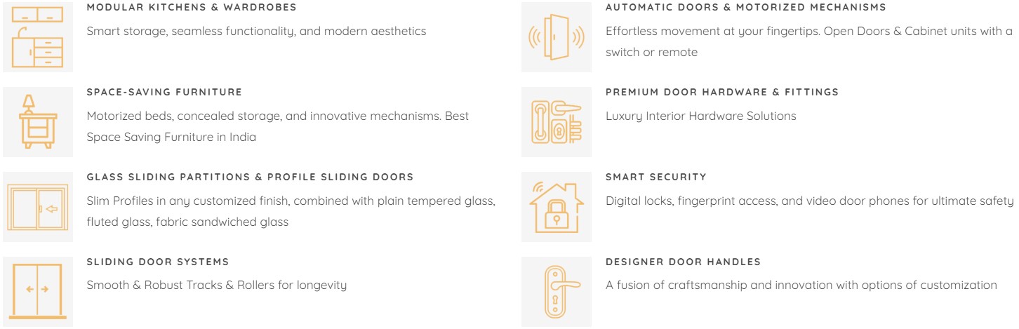 {{block class="Magento\Framework\View\Element\Template" image="" text="PGgyPjxzdHJvbmc+QWJvdXQgVXPCoDwvc3Ryb25nPjwvaDI+" template="MGS_Fbuilder::widget/imagetext/imagetext.phtml"}} {{block class="Magento\Framework\View\Element\Template" type="single" image="/4/_/4_86.jpg" alt="" alt_after="" template="MGS_Fbuilder::widget/image/single.phtml"}} {{block class="Magento\Framework\View\Element\Template" image="" text="PHA+PHNwYW4gc3R5bGU9ImZvbnQtc2l6ZTogMTRwdDsiPkVsZWdhbnQgU3BhY2VzIGlzIGFuIGV2b2x1dGlvbiBvZiBFbGVnYW50IEhhcmR3YXJlLCBhIGNvbXBhbnkgZm91bmRlZCBpbiAyMDAzIGJ5IE1yLiBNdWZhZGRhbCBaYXZlcmksIGEgdmlzaW9uYXJ5IE1lY2hhbmljYWwgRW5naW5lZXIgd2l0aCBhIHBhc3Npb24gZm9yIHByZWNpc2lvbiBhbmQgaW5ub3ZhdGlvbi4gVW5kZXIgaGlzIGxlYWRlcnNoaXAsIEVsZWdhbnQgSGFyZHdhcmUgZXN0YWJsaXNoZWQgaXRzZWxmIGFzIGEgbWFya2V0IGxlYWRlciBpbiBwcmVtaXVtIGRvb3IgaGFyZHdhcmUgYW5kIGZ1cm5pdHVyZSBmaXR0aW5ncywgc2VydmluZyBhIGRpc3Rpbmd1aXNoZWQgY2xpZW50ZWxlIG9mIGFyY2hpdGVjdHMsIGludGVyaW9yIGRlc2lnbmVycywgYnVpbGRlcnMsIHR1cm5rZXkgY29udHJhY3RvcnMsIGNvcnBvcmF0ZSBvZmZpY2VzLCBsdXh1cnkgcmVzaWRlbmNlcyBhbmQgaG90ZWxzLi4gQnVpbGRpbmcgb24gdGhpcyBsZWdhY3ksIEVsZWdhbnQgU3BhY2VzIHdhcyBjcmVhdGVkIHRvIGV4cGFuZCBvdXIgZXhwZXJ0aXNlIGludG8gdGhlIHdvcmxkIG9mIG1vZHVsYXIga2l0Y2hlbnMsIHNwYWNlLXNhdmluZyBmdXJuaXR1cmUsIGF1dG9tYXRlZCBkb29ycywgc21hcnQgc2VjdXJpdHksIGFuZCBpbm5vdmF0aXZlIHNsaWRpbmcgc3lzdGVtc+KAlHRyYW5zZm9ybWluZyBzcGFjZXMgd2l0aCB0aGUgbGF0ZXN0IGluIHRlY2hub2xvZ3kgYW5kIGRlc2lnbi48L3NwYW4+PC9wPg==" template="MGS_Fbuilder::widget/imagetext/imagetext.phtml"}} {{block class="Magento\Framework\View\Element\Template" type="single" image="/1/2/12_38.jpg" alt="" alt_after="" template="MGS_Fbuilder::widget/image/single.phtml"}} {{block class="Magento\Framework\View\Element\Template" image="" text="PGgyPjxzdHJvbmc+T3VyIFByb2R1Y3RzPC9zdHJvbmc+PC9oMj4=" template="MGS_Fbuilder::widget/imagetext/imagetext.phtml"}} {{block class="Magento\Framework\View\Element\Template" type="single" image="/5/_/5_77.jpg" alt="" alt_after="" template="MGS_Fbuilder::widget/image/single.phtml"}} {{block class="Magento\Framework\View\Element\Template" type="single" image="/6/_/6_72.jpg" alt="" alt_after="" template="MGS_Fbuilder::widget/image/single.phtml"}} {{block class="Magento\Framework\View\Element\Template" type="single" image="/7/_/7_65.jpg" alt="" alt_after="" template="MGS_Fbuilder::widget/image/single.phtml"}} {{block class="Magento\Framework\View\Element\Template" type="single" image="/8/_/8_66.jpg" alt="" alt_after="" template="MGS_Fbuilder::widget/image/single.phtml"}} {{block class="Magento\Framework\View\Element\Template" type="single" image="/9/_/9_55.jpg" alt="" alt_after="" template="MGS_Fbuilder::widget/image/single.phtml"}} {{block class="Magento\Framework\View\Element\Template" image="" text="PGgyPjxzdHJvbmc+T3VyIENsaWVudHM8L3N0cm9uZz48L2gyPg==" template="MGS_Fbuilder::widget/imagetext/imagetext.phtml"}} {{block class="Magento\Framework\View\Element\Template" type="single" image="/1/0/10_48.jpg" alt="" alt_after="" template="MGS_Fbuilder::widget/image/single.phtml"}} {{block class="Magento\Framework\View\Element\Template" type="single" image="/o/u/our_clients_1.jpg" alt="" alt_after="" template="MGS_Fbuilder::widget/image/single.phtml"}} {{block class="Magento\Framework\View\Element\Template" image="" text="PGgyPjxzdHJvbmc+V2hhdCBXZSBPZmZlciE8L3N0cm9uZz48L2gyPg==" template="MGS_Fbuilder::widget/imagetext/imagetext.phtml"}} {{block class="Magento\Framework\View\Element\Template" type="single" image="/1/1/11_46.jpg" alt="" alt_after="" template="MGS_Fbuilder::widget/image/single.phtml"}} {{block class="MGS\Fbuilder\Block\Widget\Video" video_url="https://www.kobray.com/media/videos/_Visit_us_at_Showroom_No.9_Ground_Floor_Below_Jaquar_Display_Centre_Kamla_Spaces_S.V_Rd_Sa_1.mp4" full_width="1" template="widget/video.phtml"}} {{block class="Magento\Framework\View\Element\Template" image="" text="PGgyPjxzdHJvbmc+VGVzdGltb25pYWxzPC9zdHJvbmc+PC9oMj4=" template="MGS_Fbuilder::widget/imagetext/imagetext.phtml"}} {{block class="Magento\Framework\View\Element\Template" type="single" image="/1/3/13_38.jpg" alt="" alt_after="" template="MGS_Fbuilder::widget/image/single.phtml"}} |