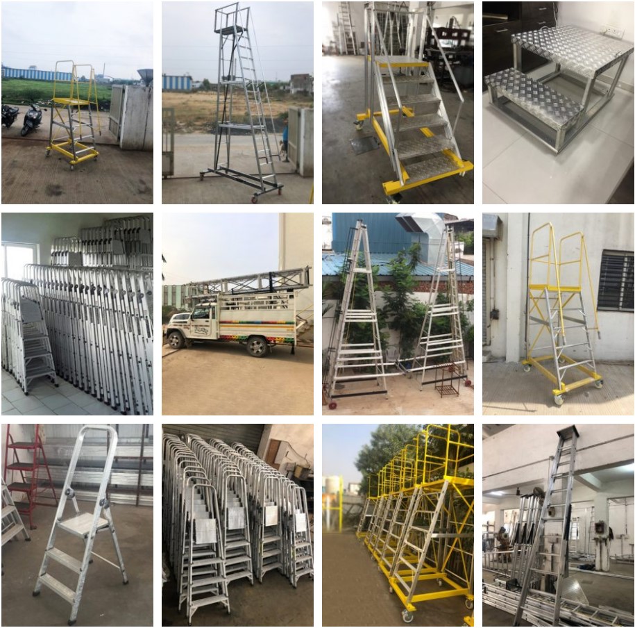 | Specifications | • Aluminium Antiskid Platform 10” x 10” • Metal Hinges • Aluminium Fully Serrated 80mm Wide Flat Steps |