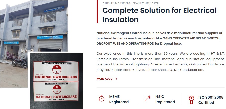 We introduce our-selves as a supplier of overhead transmission line-material like GANG OPERATED AIR BREAK SWITCH, DROPOUT FUSE AND OPERATING ROD for Dropout fuse. Our experience in this line is more than 35 years. We are dealing in HT & L.T. Polymer Insulators, Transmission line material and sub-station equipment, overhead line Material. Lightning Arrester. Fuse Elements, Galvanized Hardware, Stay set, Rubber Hand-Gloves, Rubber Sheet, A.C.S.R. Conductor etc… The venture is backed up by our business with Government, Semi Government and other corporate organization for last 35 years.