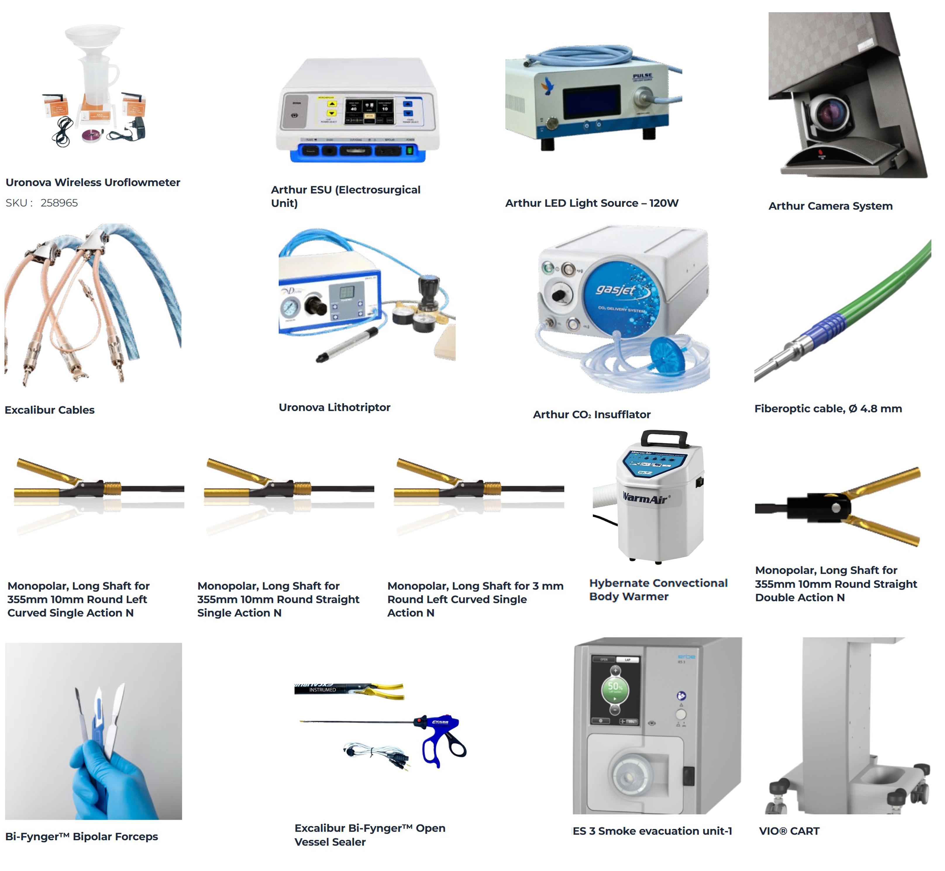 | Package Contents | 1 Dissection Device (with round curve insert), 1 Maryland insert, 1 Reusable High Frequency 6-pin Cable |