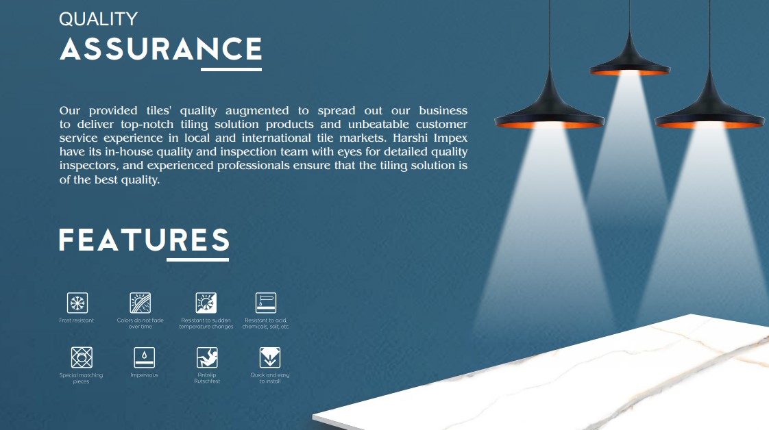 | Fire Resistance | Heat and thermal-shock resistant ceramic tile category; exact rating not stated in the provided catalogs |