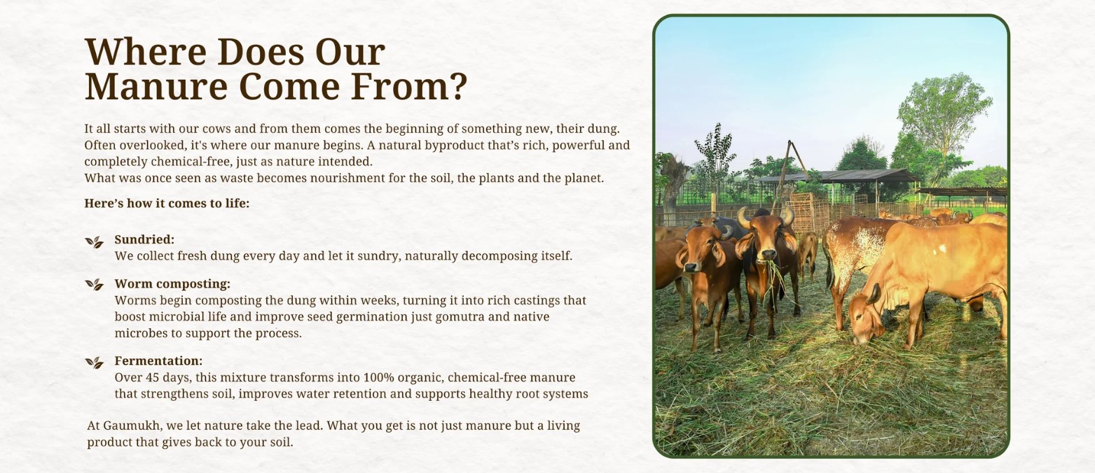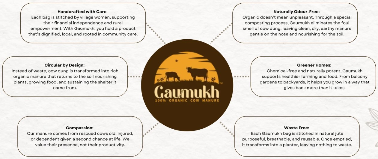 Gaumukh didn’t start as a business. It began in a cowshed, born from the need to care for abandoned lives when donations ran dry. The answer came from the most overlooked resource: cow dung. Gaumukh is not about innovation, but rediscovery turning the undervalued into life for land and animals. This isn’t just about cows. Our soil is dying, our food chemical laden, and we’ve grown disconnected from what sustains us. Sustainability isn’t a trend. It’s a responsibility. Every bag supports cows. Every handful heals soil. Every purchase reject waste, cruelty, and indifference.