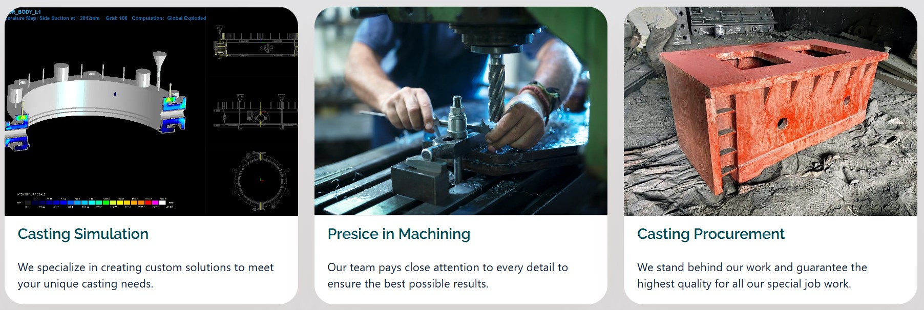 | Key Services | All Pattern Types, Casting Procurement, High-Quality Machining, SPM Design & Manufacturing, Casting Defect Simulation |