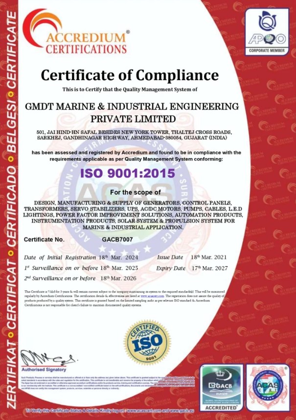 We introduce our self as M/s GMDT Marine & Industrial Engineering Pvt. Ltd and are pleased to inform you that we are the leading power solution provider for Marine and Industrial segment custom built applications. We have a policy of continuous improvement with a commitment to Quality at all levels of the organization. We strive to supply products of the highest standards with value for money delivered to our clients when and where they are needed.