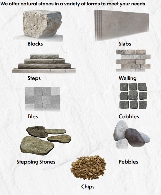Navkar Stones Natural Stone Blocks for Construction & Landscaping | Product Forms: Blocks | Surface Finishes: Natural/Riven, Sawn, Honed/Polished, River Washed, Antique, Bush Hammered, Rockfaced