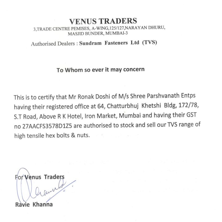 Having existed and successfully recognized in the industry since 1985 Shree Parshvanath Enterprise has gained erudite experience of more than 40 years. Founded by Mr. Harish Prabhudas Doshi and now led by his son Mr. Ronak Doshi, SPE is a front foot runner in manufacturing & Supplying world class genuine fasteners for more than 30 years. We are a precision Nut & Bolt manufacturer company, are 100% customer oriented unit and have cutting edge technology for manufacturing various kinds of M.S., S.S., High Tensile, Brass, Copper, Aluminum Nuts, Bolts, Screws, Studs, Washers, Rivets & Other Components & in various types of passivation's including Hot Dip Galvanized & PTFECoating. And other Hardware Items. The company is achieving new heights under the dynamic leadership of experienced and qualified engineers. This is only because of their understanding and in depth experience in the technology of fasteners. We have become synonyms to perfection in the market. DIN, IS, JIS, ANSI, ASTM and numerous other international quality standards are strictly followed for production of flawless range of fasteners. we also develop fasteners as per customers requirements.